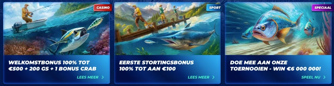 Nieuwe spelers ontvangen een aantrekkelijk welkomstpakket bestaande uit een 100% match bonus tot €500 plus 200 gratis spins op populaire slot machines. Dit pakket is verdeeld over de eerste storting om nieuwe spelers optimaal kennis te laten maken met onze spelcollectie.